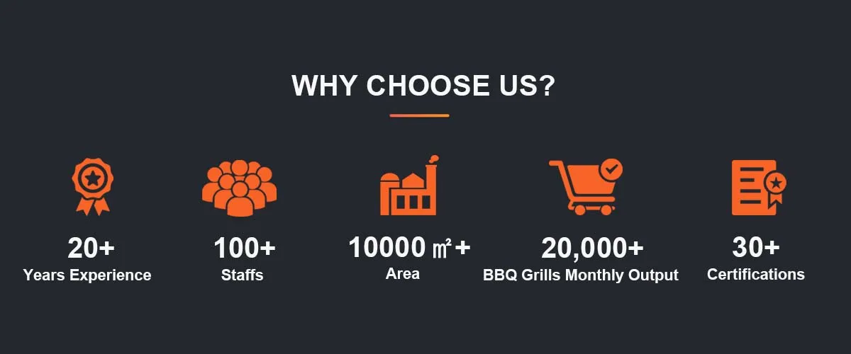 #5 highest on-time delivery rate in BBQ GrillsFinished product inspectionTotal floorspace (6,000㎡)ODM services availableYears in industry(17)